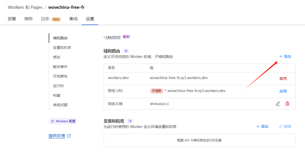 四、workers自定义域名绑定